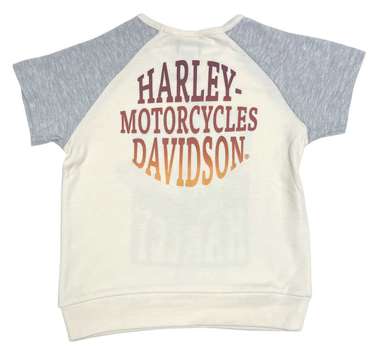 Harley-Davidson® Girls' Relaxed Fit Short Sleeve Knit Tee - Cream & Gray