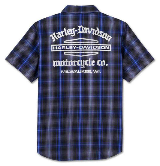 Harley-Davidson® Men's Staple Short Sleeve Plaid Shirt – Black/Ombre Blue